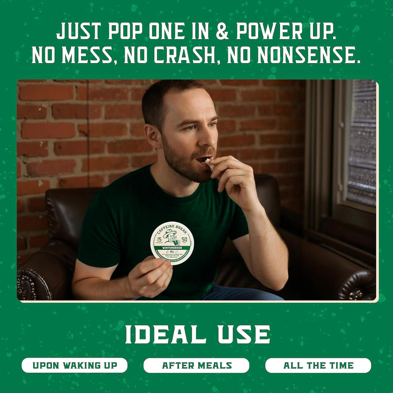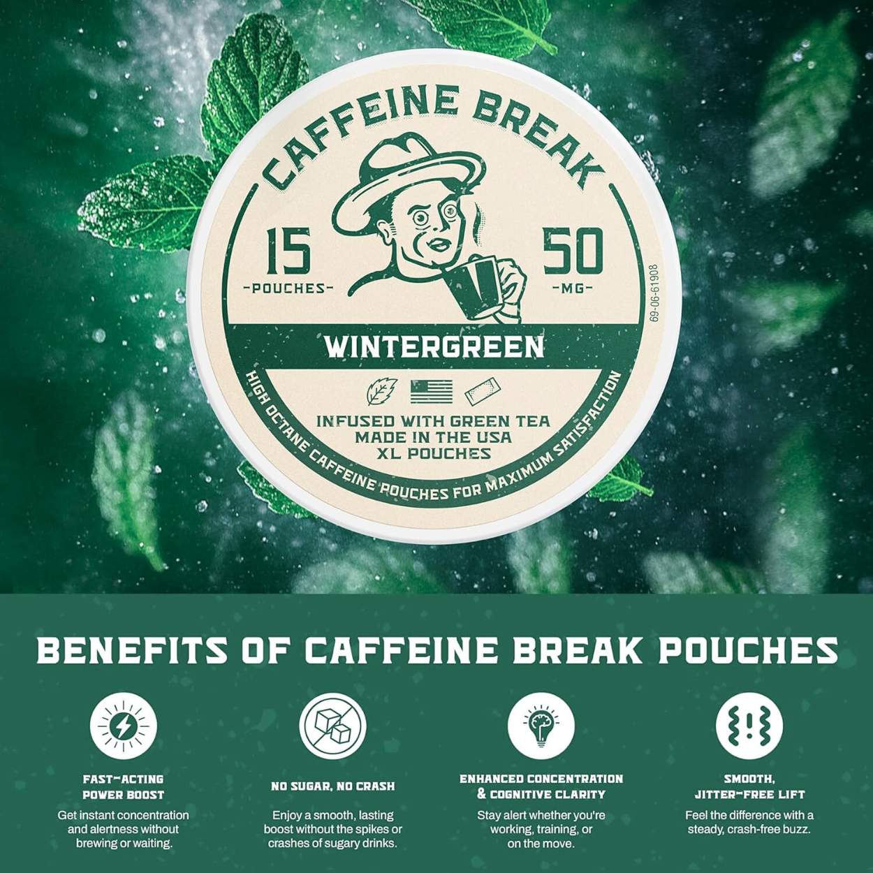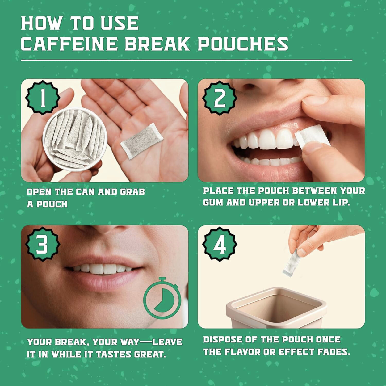• 50mg Caffeine: Fast, smooth boost of energy per pouch (standard strength)